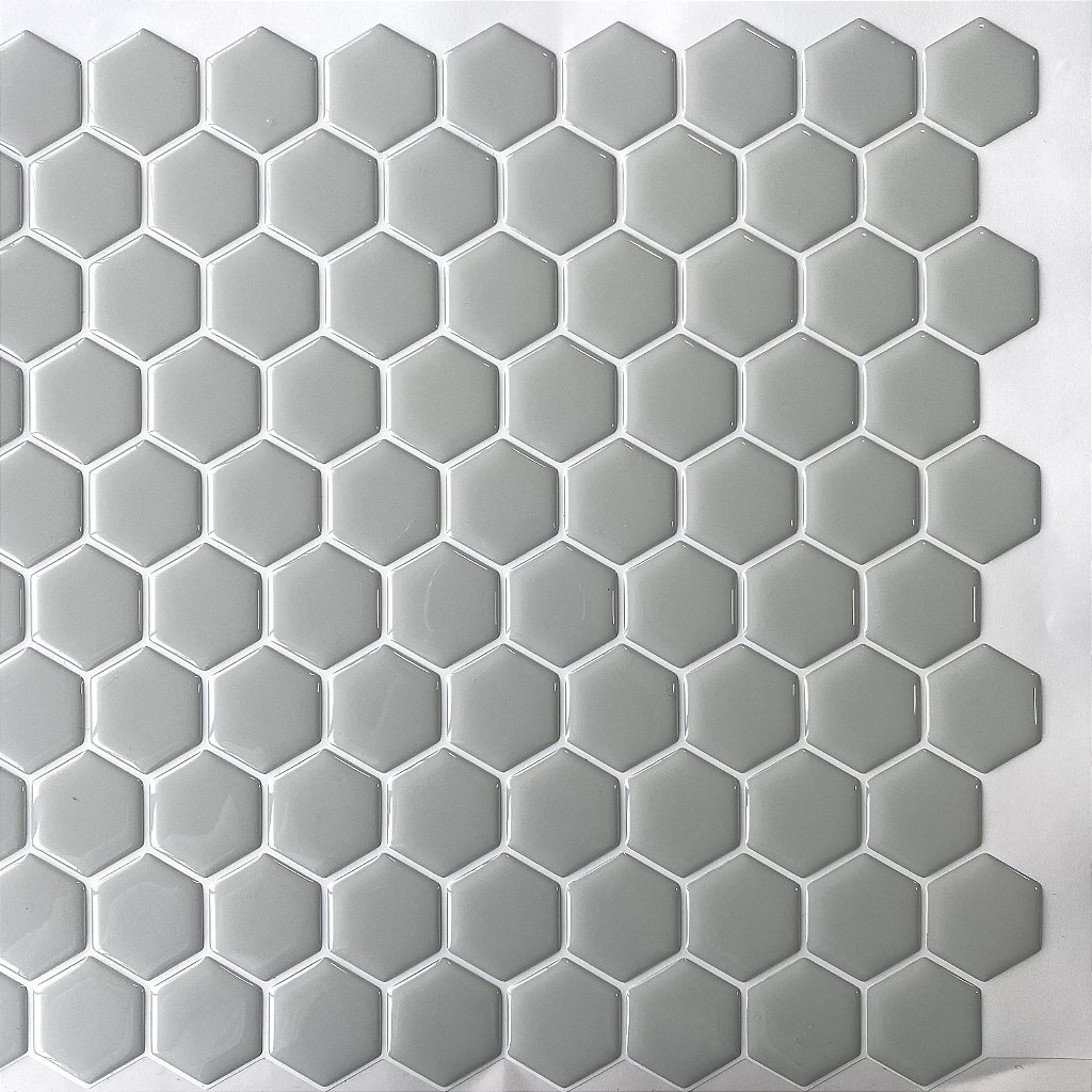 KIT - Pastilha Adesiva Resinada HEX GRAY - Rejunte BRANCO - KIT 10 Placas